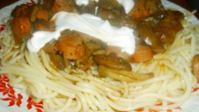 Nyitólap » 2022 Szeptember 7 » Gombás-virslis pörkölt spagettivel