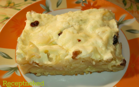 Elkészítése: Egy nagy tepsibe 6 kanál étolajat teszünk, melyre a kocka tésztát egyenletesen elosztjuk (nyersen!). A többi hozzávalót (cukor, kefír, tejföl, tej, tojás) kikeverjük, majd a tésztára öntjük. Készre sütjük kb 1 óra alatt. Alufóliát teszünk rá, majd a végén kb. 15-20 percre levesszük, hogy kicsit piruljon meg. Én mazsolát is szórtam bele. | |